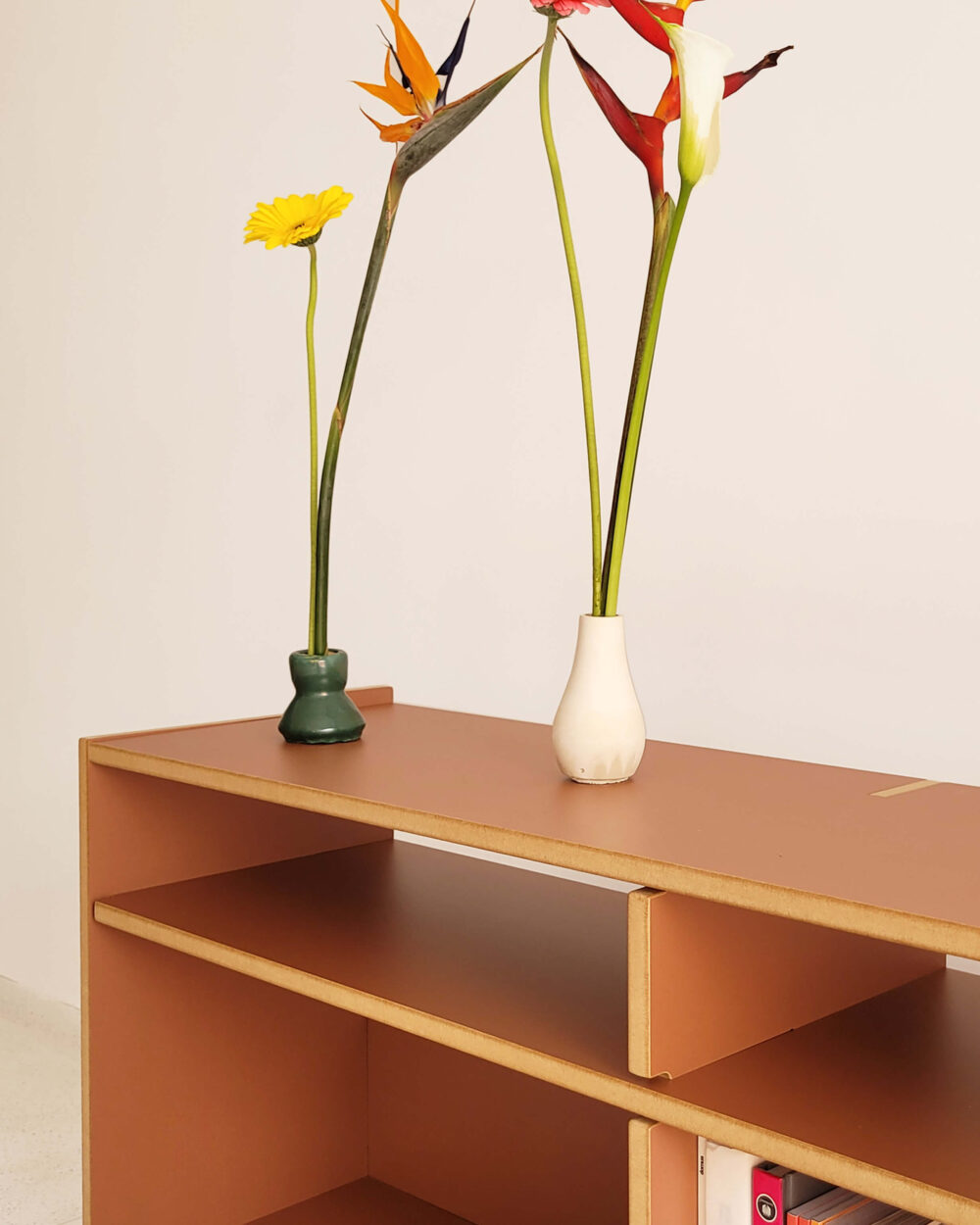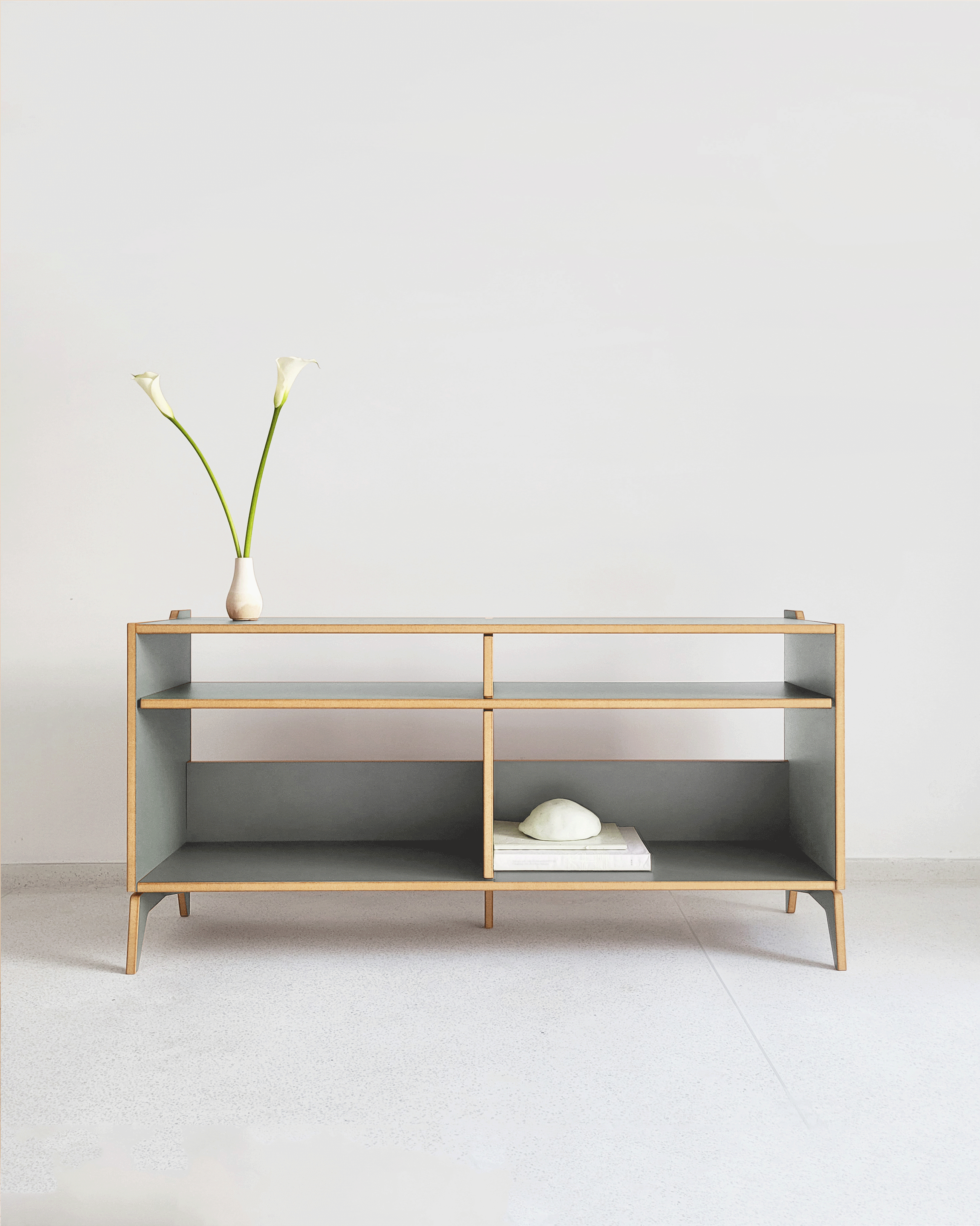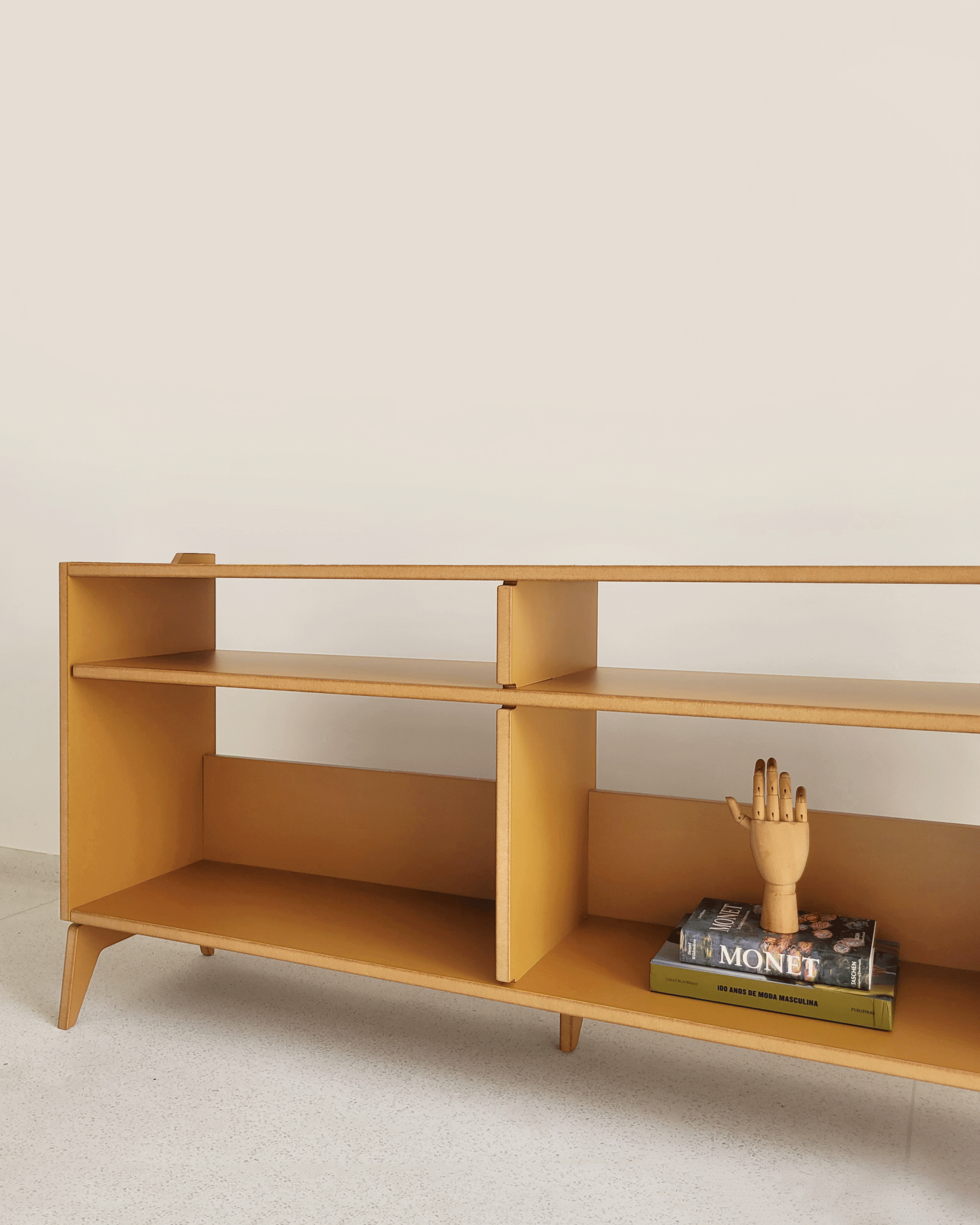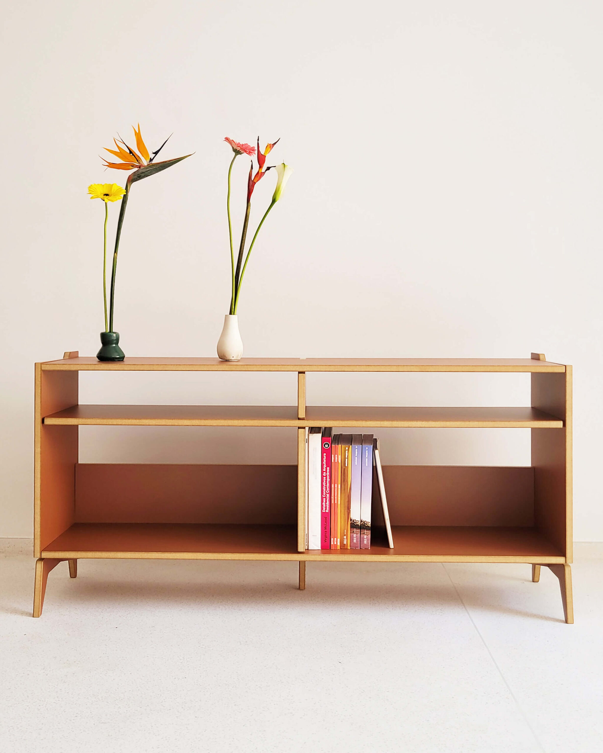 Os móveis da Bertha Home são produzidos em corte digital e acabamento manual. O resultado são peças únicas e funcionais, com design brasileiro 100% autoral e estrutura firme e resistente, que dispensam o uso de cola, pregos ou parafusos.