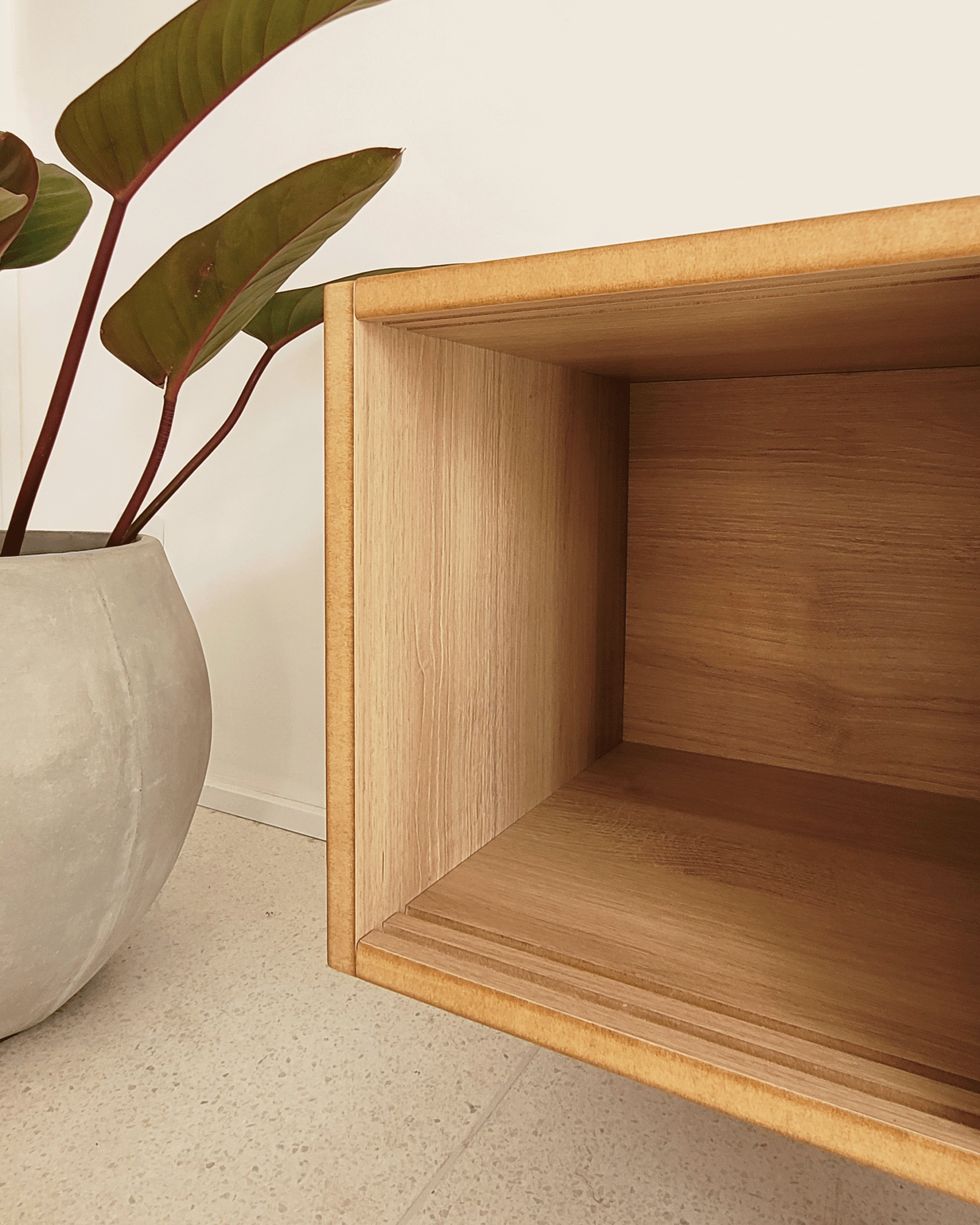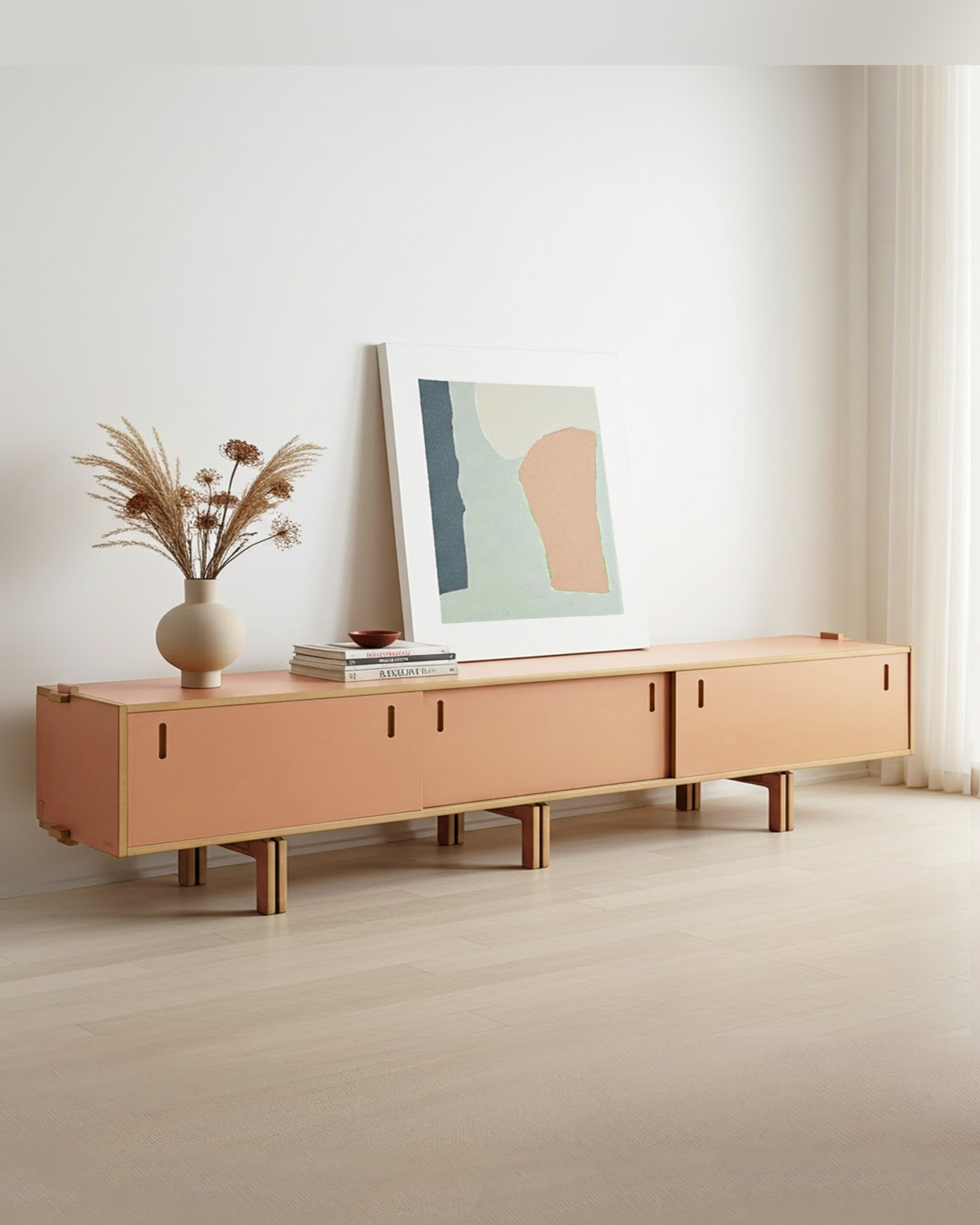 Assim como todas as peças da Bertha Home, é produzido em corte digital e acabamento manual, resultando em um móvel único, com design brasileiro autoral, estrutura firme e resistente — sem cola, pregos ou parafusos.